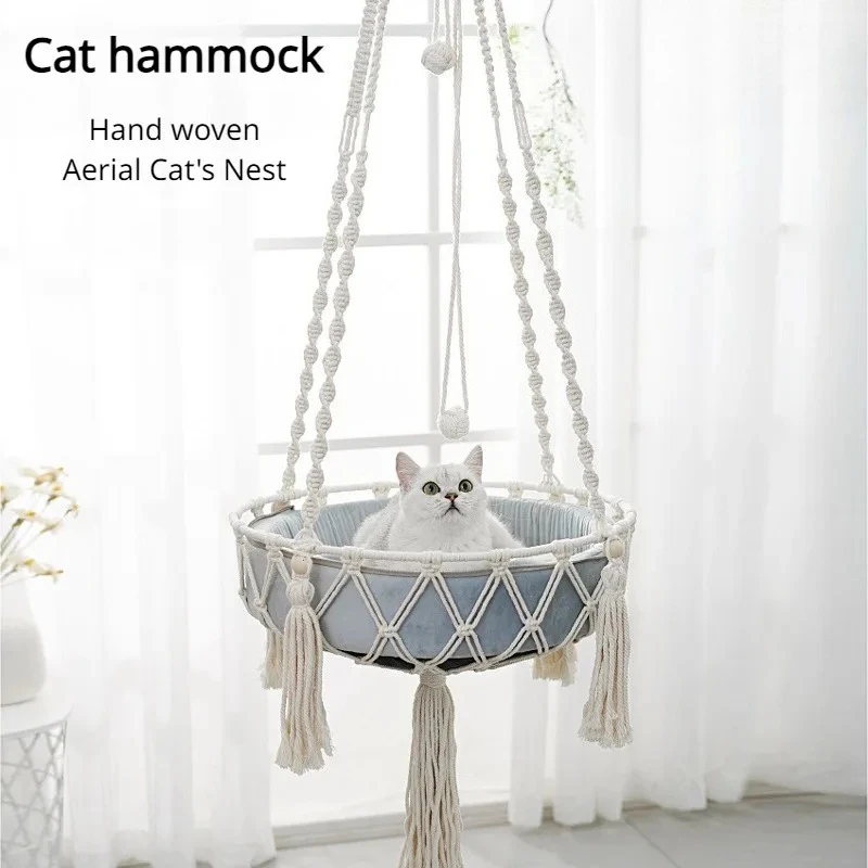 1. Hand woven cotton rope cat hammock, made of high-quality cotton rope, is sturdy and durable, and can withstand the use and play of pets. Do not shed hair and provide pets with a clean and hygienic resting environment.
